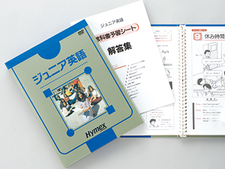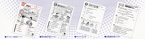「ジュニア英語」では,やさしい日常会話表現を学ぶ「デイリー会話シート」と,中学1年で学ぶ基礎的な英語を